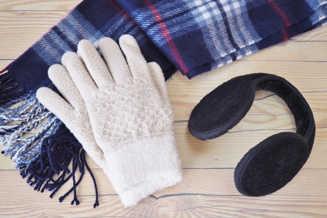 手先や足先が冷えると、全身の体温が下がるため手袋などの防寒アイテムが必須です。