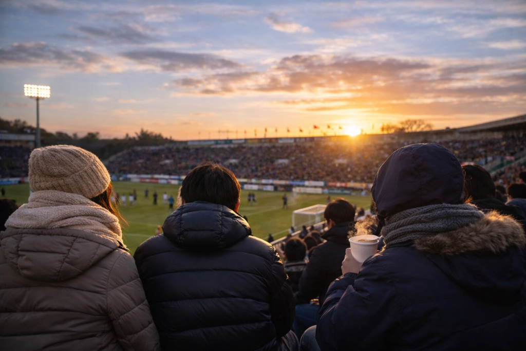 2月・3月のサッカー観戦で重要なのは、防寒の“量”ではなく“調整力”です。